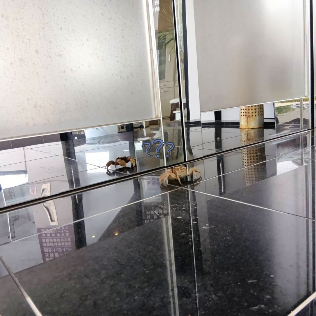 鏡に映る自分が気になっている様子…