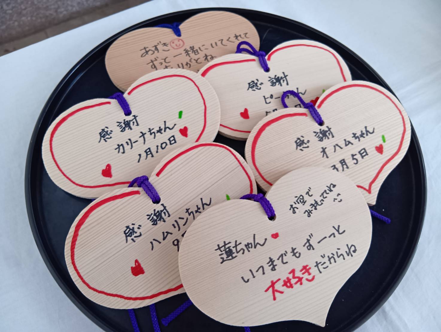 ハート型の木札にて