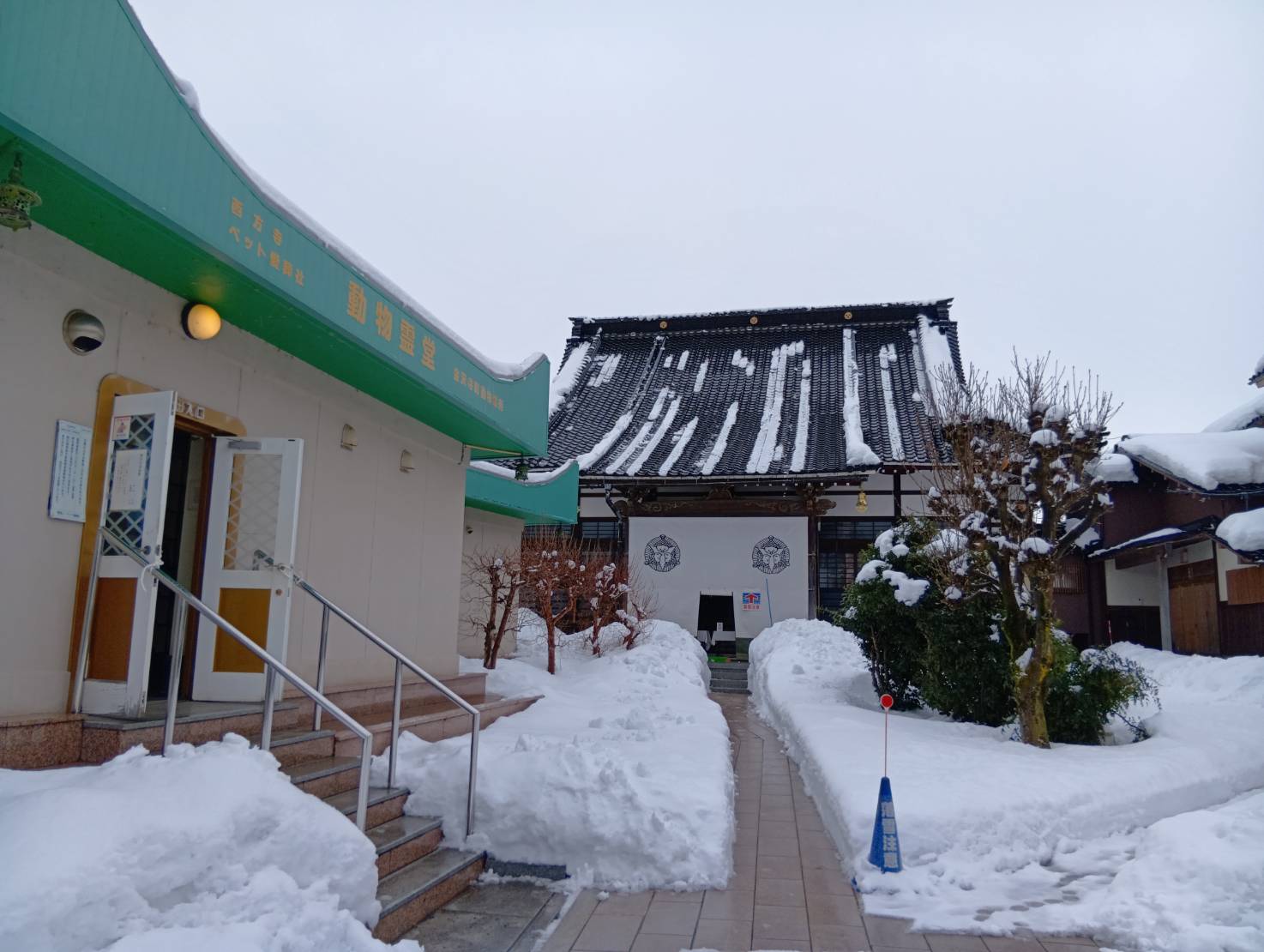 大雪の影響がいまだに残っている金沢寺町動物霊苑。
